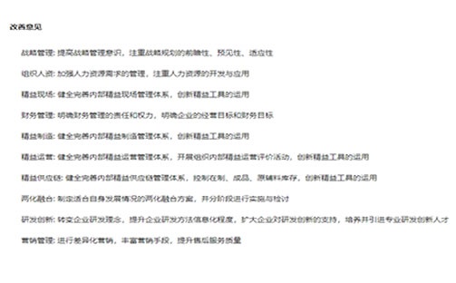• 精益管理測評 測評改善建議